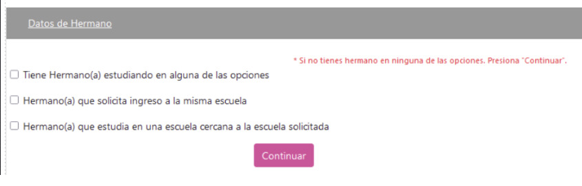 - Si tiene hermana(o) en alguna de las escuelas seleccionadas como opciones, favor de proporcionar CURP al momento de realizar el trámite.