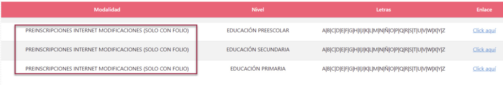 El periodo de preinscripción será del 9 de febrero al 20 de marzo de 2026, por nivel educativo, conforme a la letra del primer apellido como se muestra en la tabla siguiente: